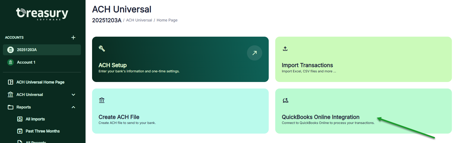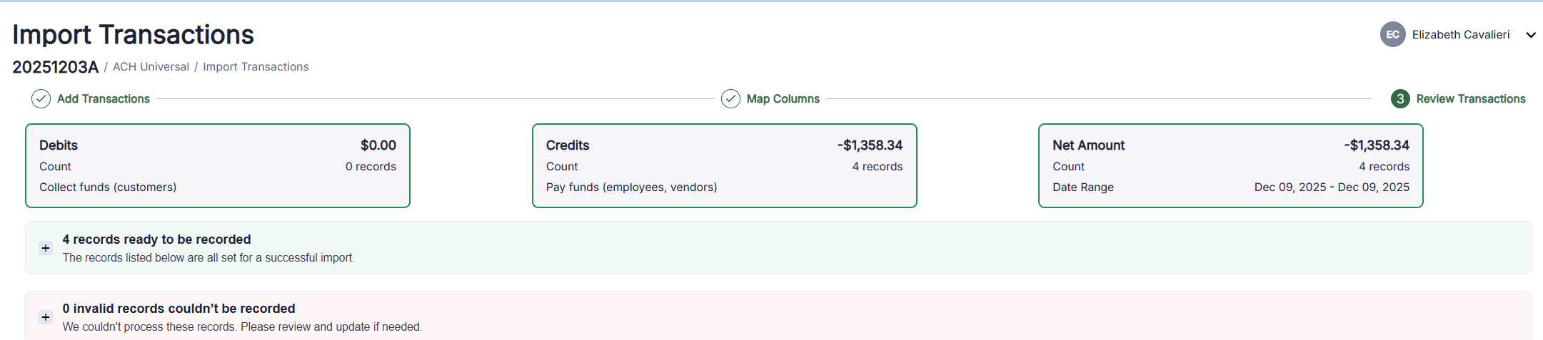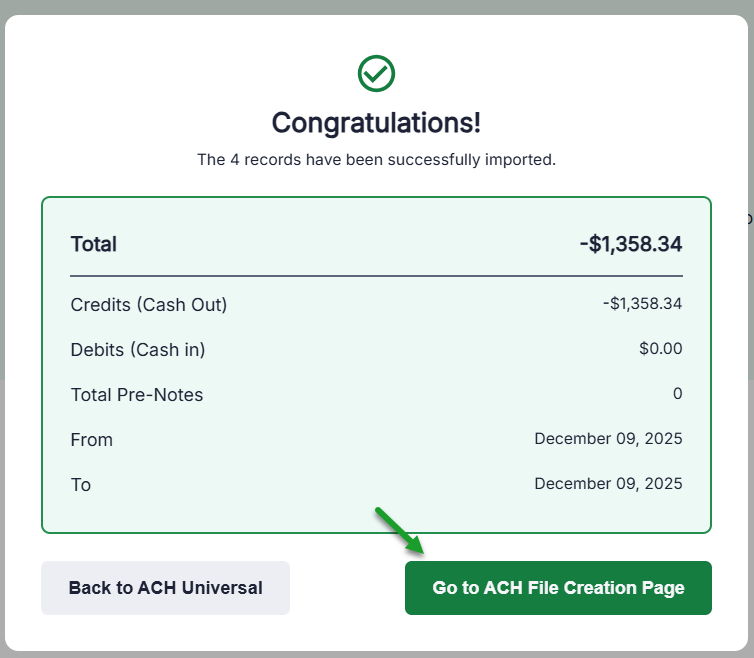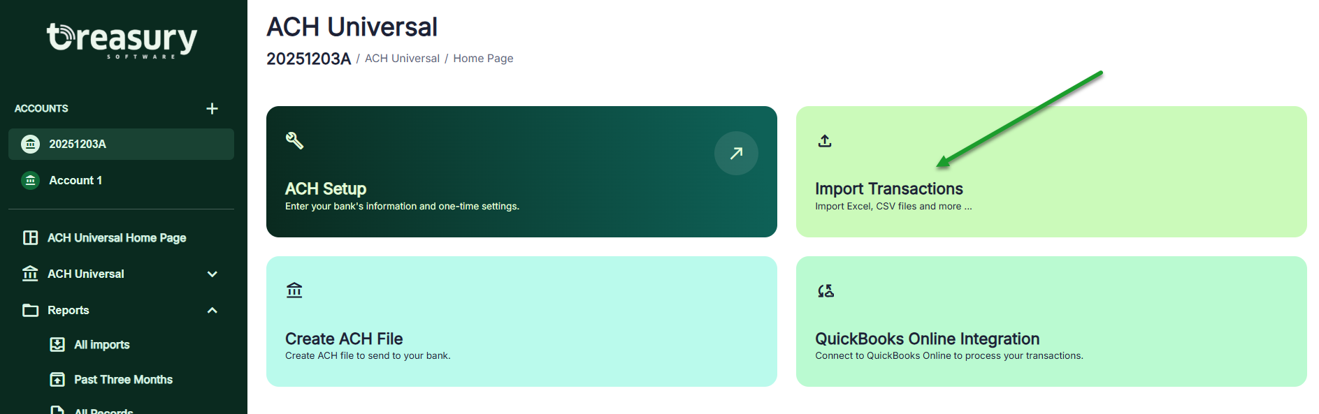 --Import an ACH text file (This option is a small button at the bottom left of the page.)