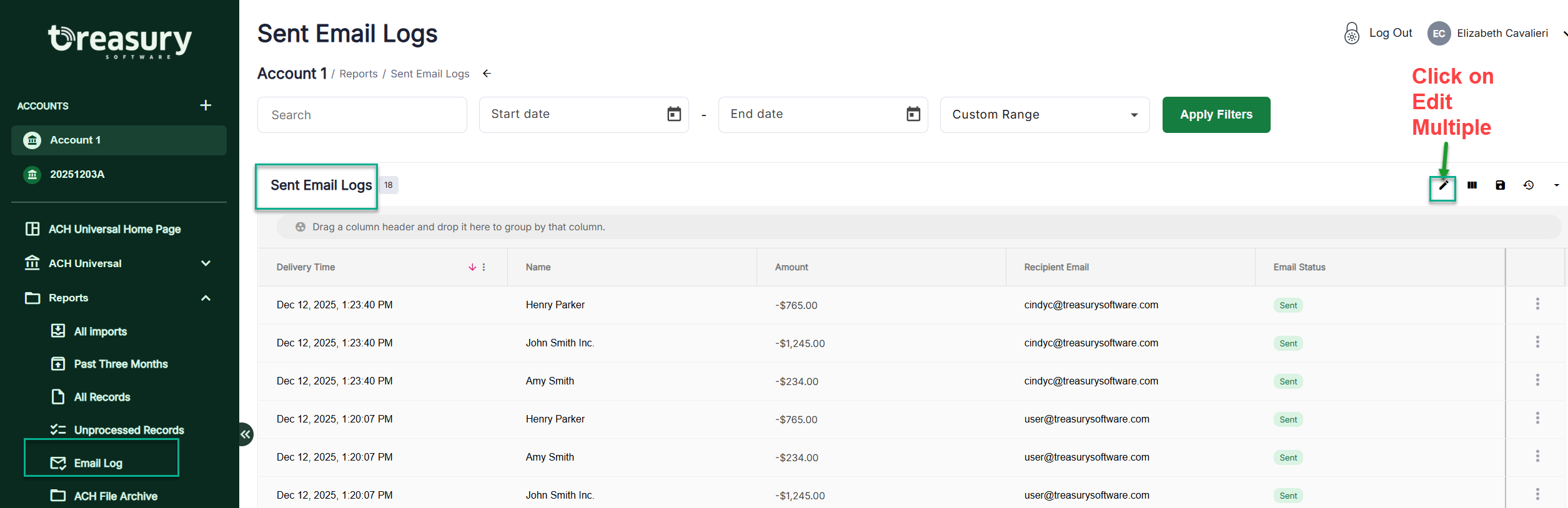 If you need to resend several emails, click on the 'Edit Multiple' pencil icon.
