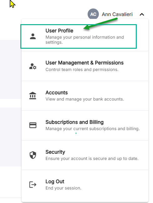 Once you have licensed the software, to reset your password, click on your Profile name in the top right corner and then 'User Profile':