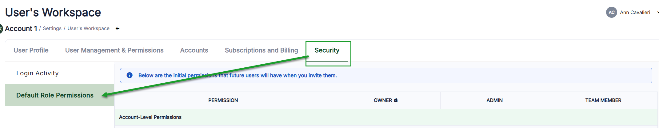 An Owner/Admin has full permissions to add, copy, or rename a bank account. However, a User must be given permissions to Bank Account features. To do this, in the lower left corner, click on Settings >User's Workspace >Security >Default Role Permissions.
