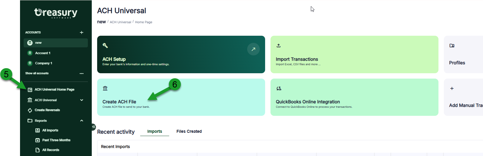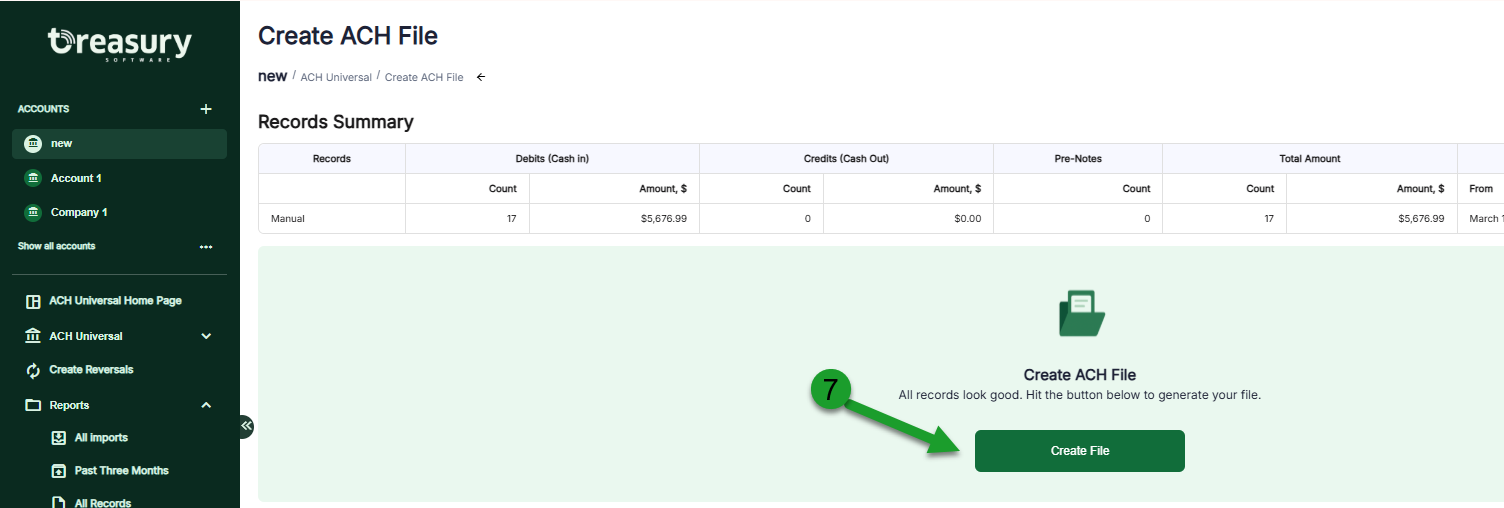 6. Click the 'Create ACH File' light green tile.