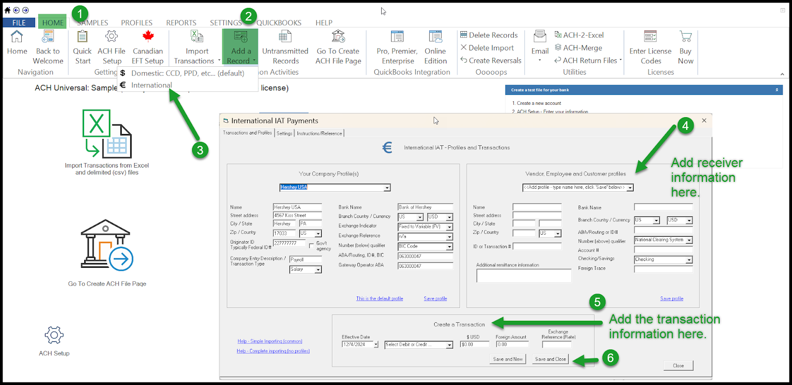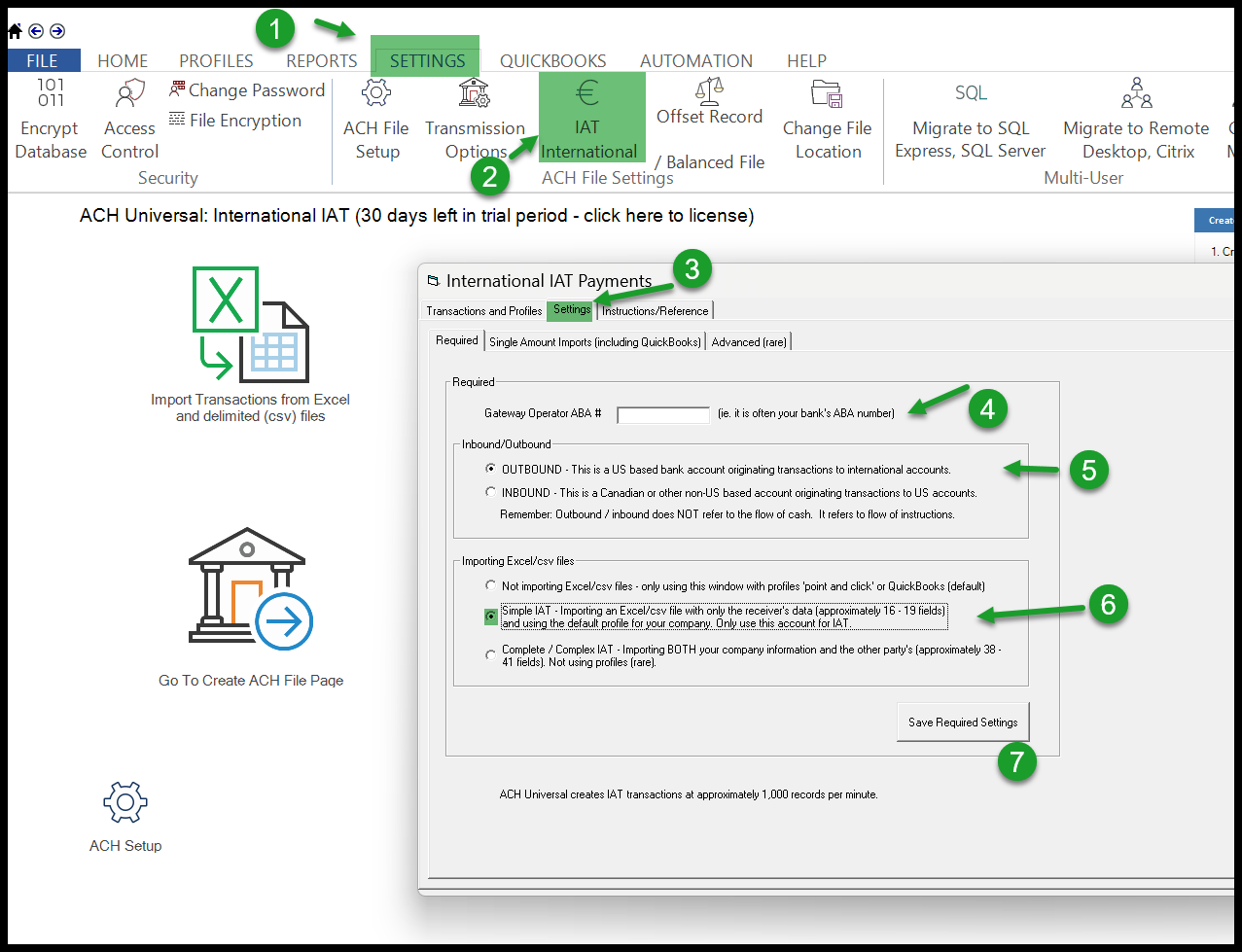 ACH Universal provides multiple ways to create IAT records, including Point-and-Click, Simple Import, Complete Import, and QuickBooks integration.