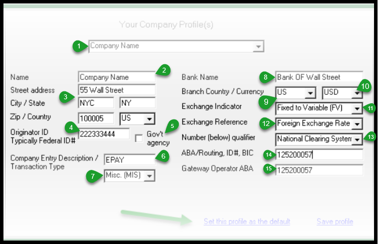 Add YOUR Company Profile Information and Select YOUR Default Profile