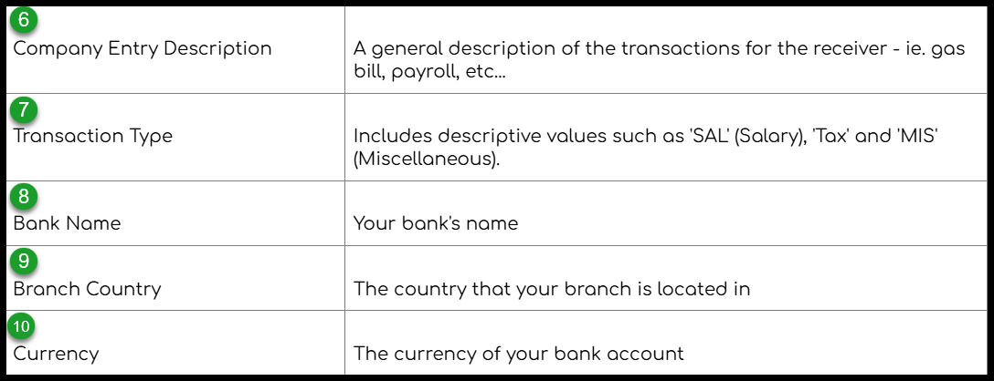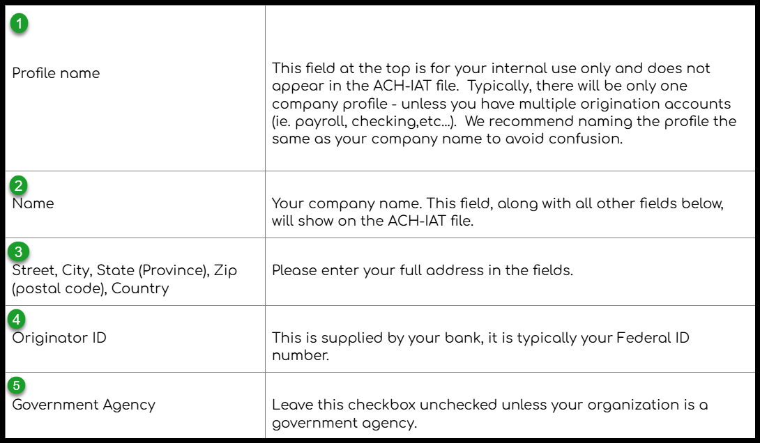 Other omissions may allow the transaction to be created, however, the file may ultimately be rejected by the NACHA network.