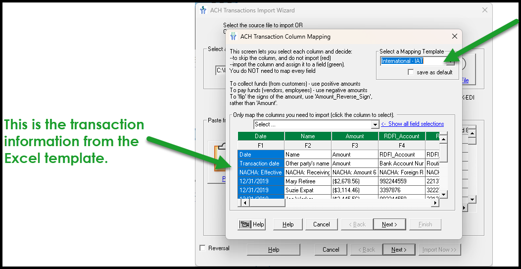 Create an IAT File with Either One or Multiple Transactions by Importing an Excel or CSV File:
