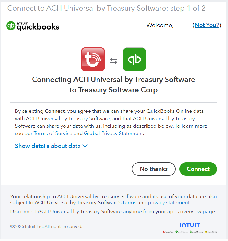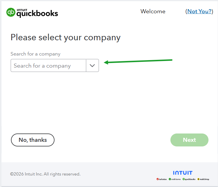 If you have multiple QuickBooks Online companies - you can select here.